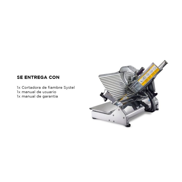 Descubre la cortadora de fiambre Systel CF330, una potente solución comercial que combina robustez y ligereza para un rendimiento excepcional. Con una potencia de 1/3HP y un diámetro de cuchilla de 330mm, obtén cortes precisos y uniformes de hasta 15 mm de espesor. Su diseño inteligente incluye un r...