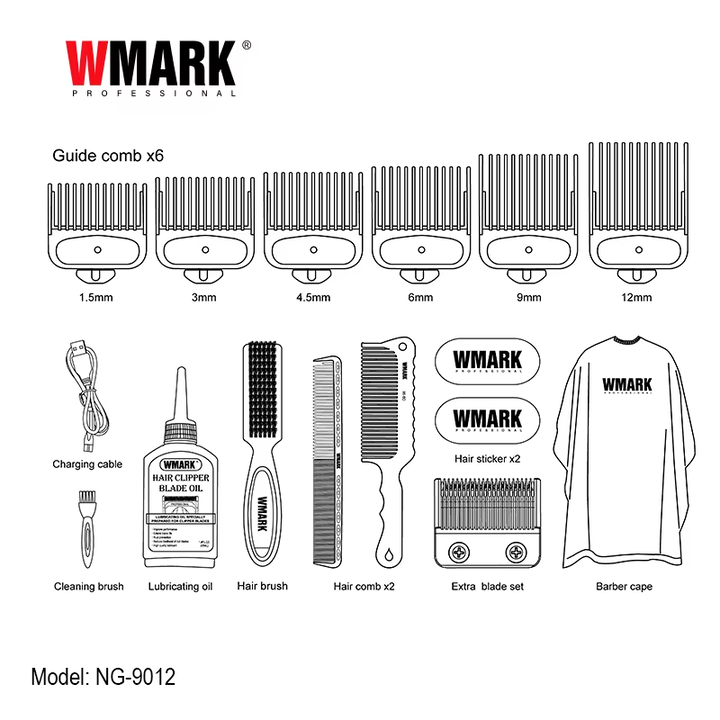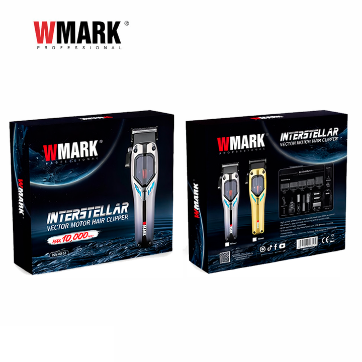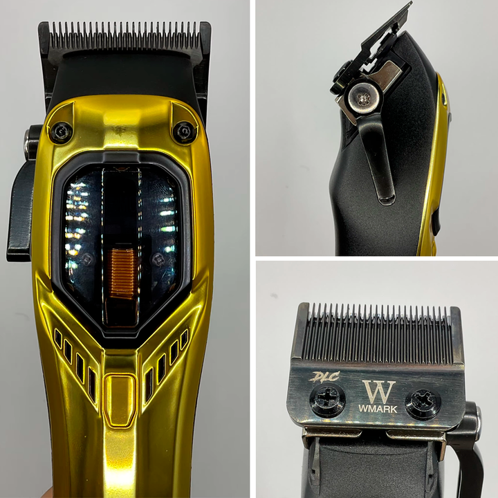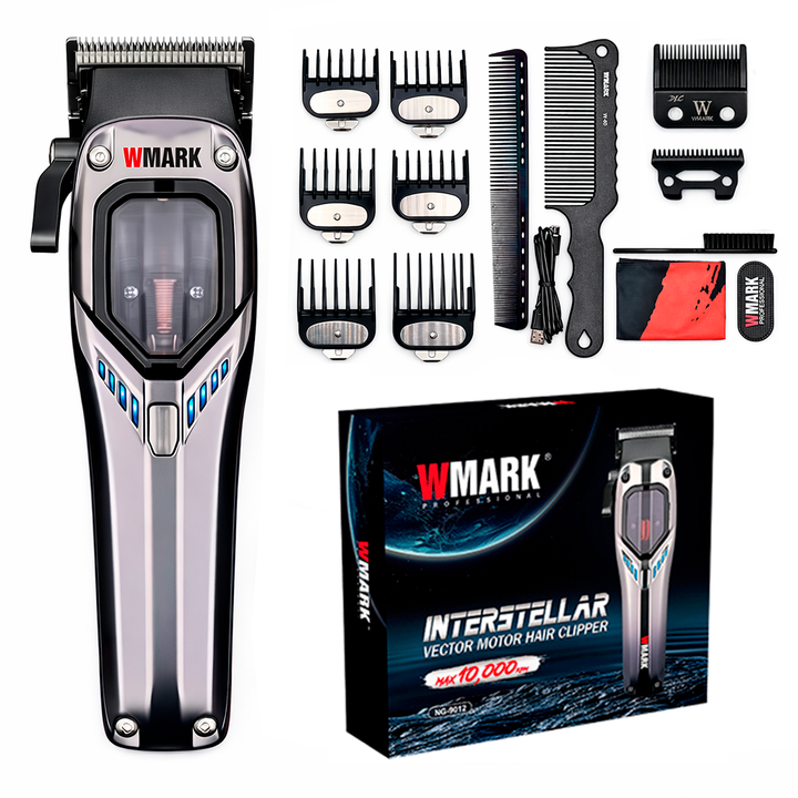 CORTADORA DE PELO INALAMBRICO CON MOTOR MAGLEV WMARK - Cuchilla de acero inoxidable 5CR con proceso DLC. - Velocidad del motor Maglev: 7800-10800 RPM. - Batería de litio: 2500 mAh, 3,5 horas de carga completa para 200 minutos de uso. - Con indicador LED. - Accesorios: 6 peines guía (1,5/3/4,5/6/9/12...