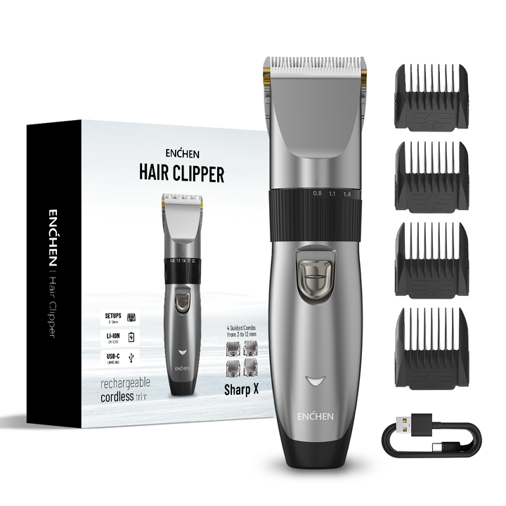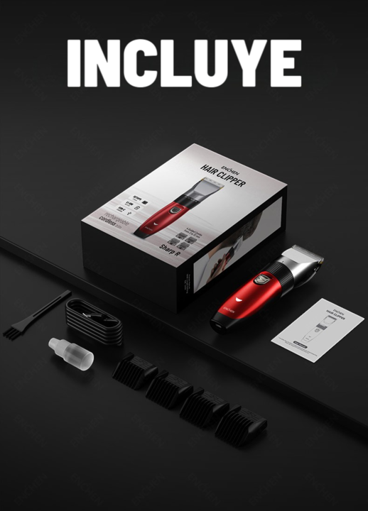 ENCHEN HAIR CLIPPER SKU ROJA: SHARP R SKU PLATEADA: SHARP X - Potencia nominal: 4 W - Tiempo de carga: 120 min - Tiempo de corte por carga: 210 min - Interfaz de carga: USB TIPO C - Diseño clásico - Fabricación en aleación de titanio - Interruptor giratorio para ajustar las 5 posiciones de longitud ...