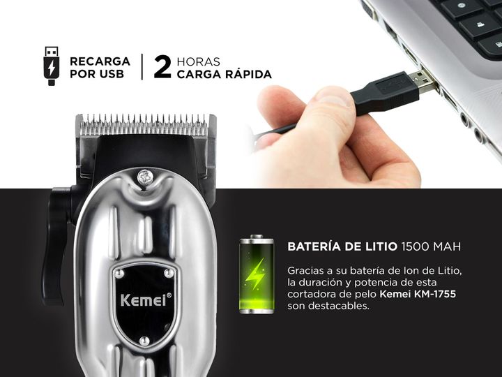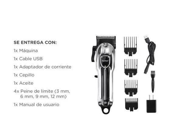 Professional barberia Hair Clipper Kemei te ofrece una experiencia de corte superior con productos innovadores y de alta calidad. La Máquina de Cortar Pelo Profesional Kemei permite lograr un acabado perfecto en pocos minutos, gracias a sus láminas de precisión que, al realizar movimientos laterales...