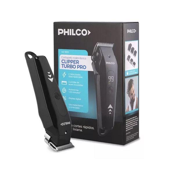 La Cortapelo Inalámbrica Clipper Turbo Pro de Philco es una herramienta de cuidado personal avanzada, diseñada para ofrecer cortes de cabello precisos y profesionales. Cuenta con dos velocidades de operación, ajustables entre 5500 y 6000 RPM, permitiendo una mayor flexibilidad y adaptación a diferen...