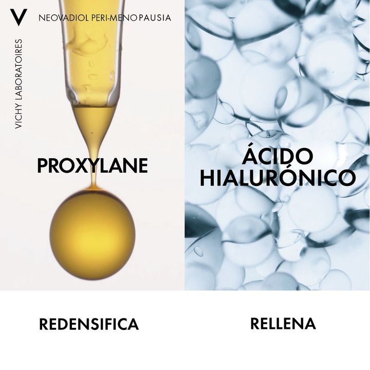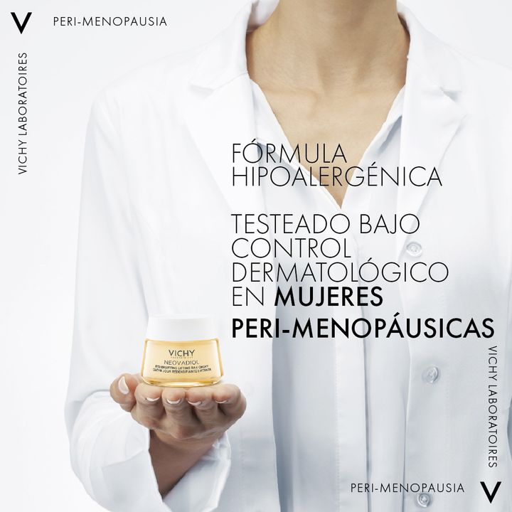 En la peri-menopausia, las variaciones hormonales aceleran los signos del envejecimiento de la piel que causan la pérdida de elasticidad, densidad y definición del contorno facial. Neovdaiol Peri Menopausia crema de día redensificante reactiva los mecanismos antiedad de pieles secas durante la menop...