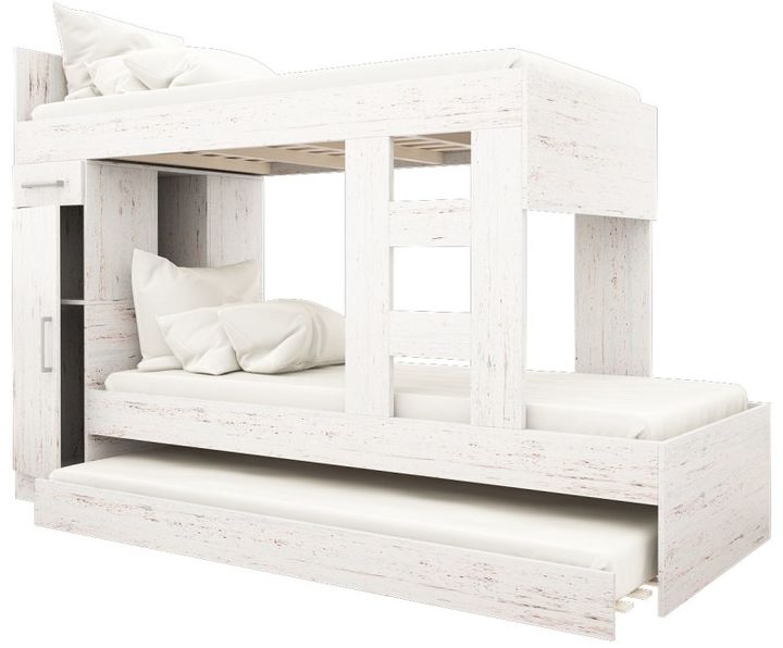 CUCHETA TRIPLE 601 3C 1P 1C VENECIA MUEBLES ORLANDI -1 Puerta y 1 Cajon -2 estantes -3 camas -Cama inferior con ruedas -Parrilla en madera maciza -Largueros y escalera en 25 mm, cabeceras en 15 mm -Medidas (AnxAlxProf)2310x1550x905 mm -Color Venecia -Modelo 601 -Garantía fabricante 12 meses -Origen ...
