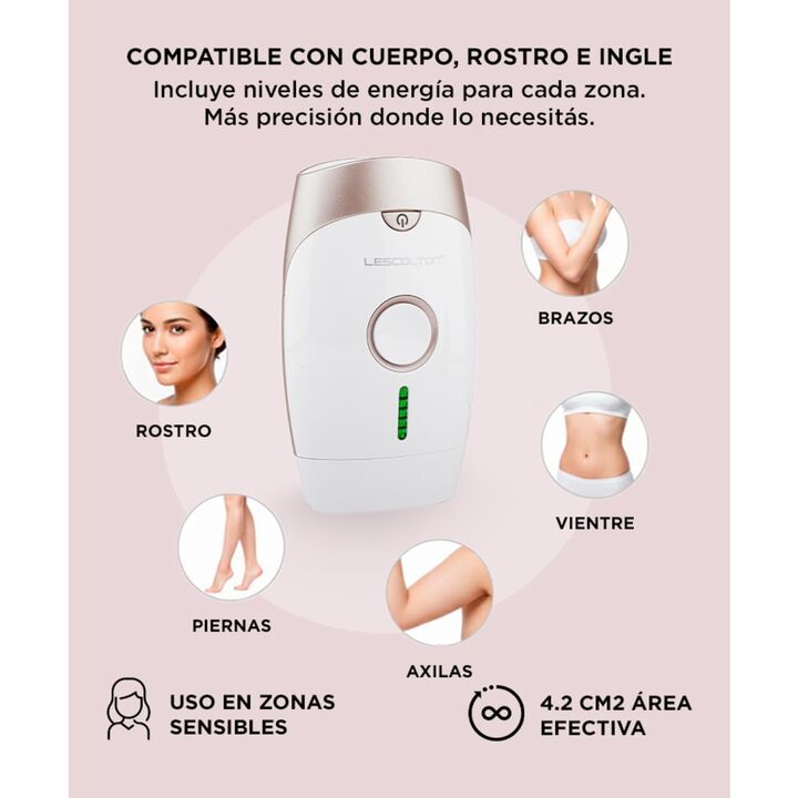 Con la depiladora IPL LESCOLTON T002 vas a poder disfrutar de meses de piel suave y libre de vello de manera cómoda y efectiva. Su avanzada tecnología de pulsaciones de luz ataca la raíz del vello corporal, logrando reducir hasta un 75% en solo 4-5 tratamientos. El dispositivo cuenta con un filtro U...