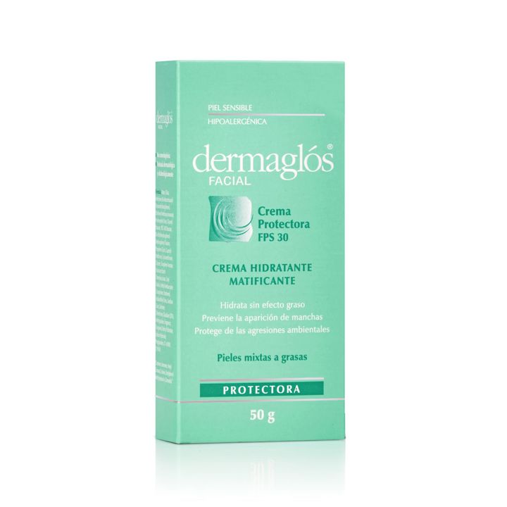 Crema Dermaglos Facial Matificante Piel Mixta Fps30 X 50 Gr Su innovadora fórmula le proporciona a la piel todo lo que necesita para mantenerse protegida, suave e hidratada, sin efecto graso. Especialmente indicada para pieles mixtas a grasas. Aplicar todos los días sobre la piel limpia como parte d...