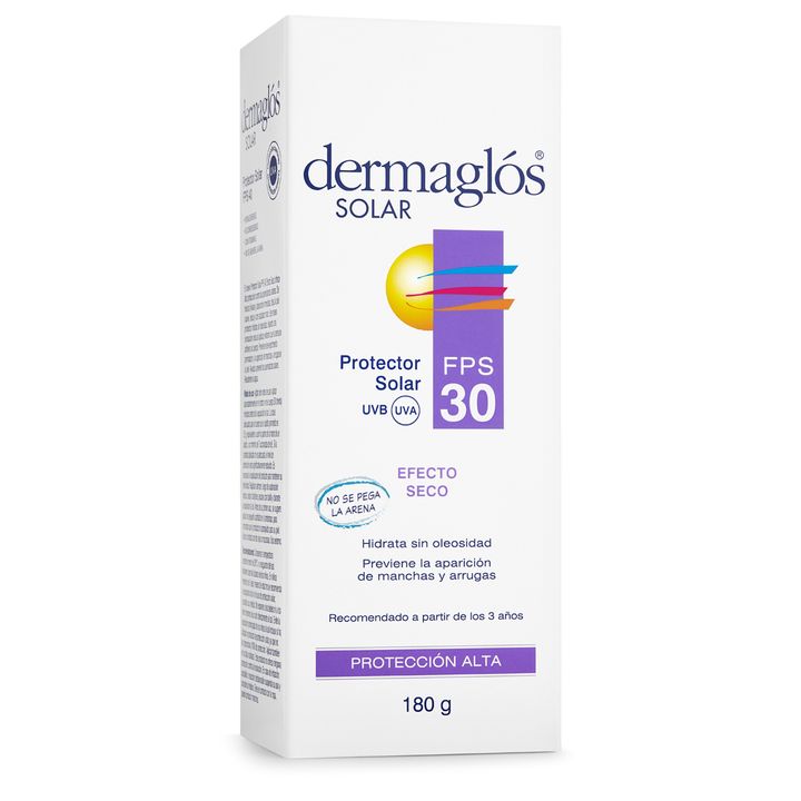 Protector Solar Dermaglos Fps 30 Efecto Seco Matifica Especialmente indicado para hidratar y nutrir la piel muy sensible del rostro y del cuerpo, posee una fórmula especialmente diseñada para brindar hidratación sin oleosidad, otorgando un efecto matificante. Previene el envejecimiento prematuro de ...