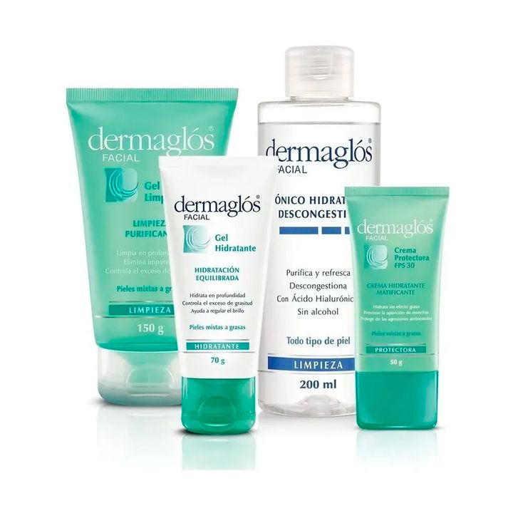Componentes Gel Dermaglos Hidratante Limpeza Pieles Mixtas X 70 G Código: 7793742007606 | SKU: 008024 x 1 uni Gel Dermaglos Facial De Limpieza Purificante X150g Código: 7793742007583 | SKU: 008022 x 1 uni Dermaglos Crema Facial Matificante Piel Mixta Fps30 X 50 Gr Código: 7793742007620 | SKU: 008009...