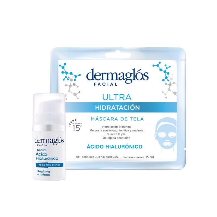 Componentes Mascara Facial De Tela Ultra Hidratacion Dermaglos 15ml Código: 7793742008610 | SKU: 008198 x 1 uni Dermaglos Serum Facial Doble Acido Hialuronico 30ml Código: 7793742007118 | SKU: 008113 x 1