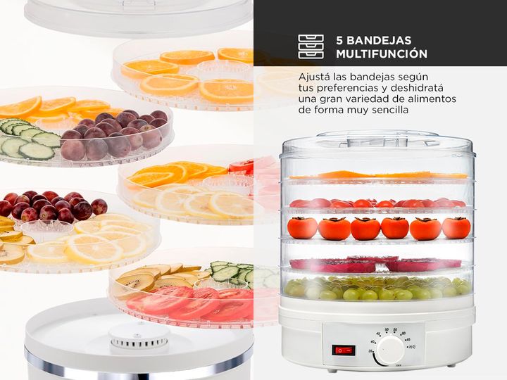 ¡Descubrí la deshidratadora de alimentos definitiva para tu cocina! Nuestra deshidratadora multifuncional te ofrece una manera fácil y saludable de disfrutar de una amplia variedad de alimentos deshidratados en casa. Con capacidad para deshidratar frutas, verduras, carne, hierbas e incluso flores, e...