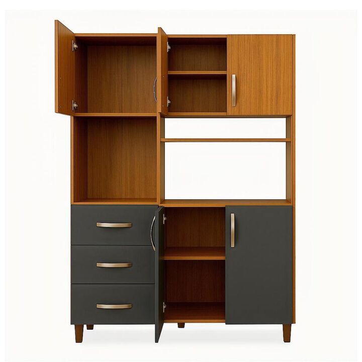 Despensero Organizador de Cocina Kit de 5 puertas y 3 cajones Grafito Teca Maximo Acapulco