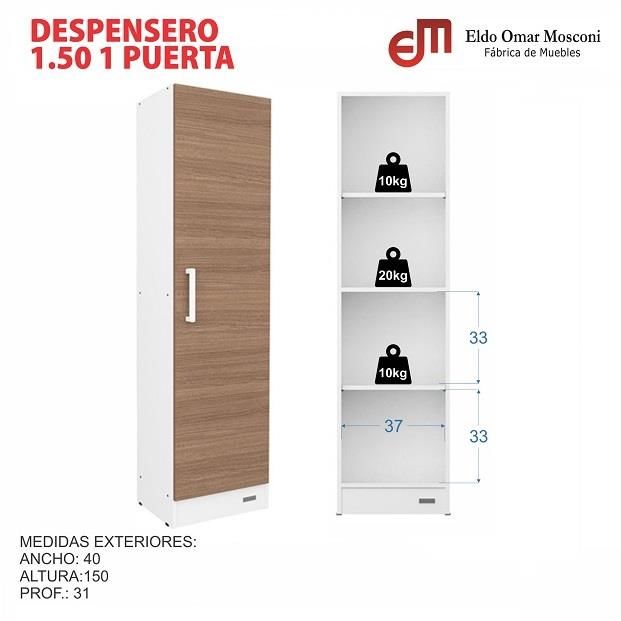 DESPENSERO ORGANIZADOR MUEBLE DE COCINA MOSCONI 1 PUERTA 56142 COLOR BLANCO ** EL PRODUCTO SE ENTREGARA EN AMBA A LAS 96HS HABILES DESPUES DE LA COMPRA. LUEGO DE COMPRAR TE LLEGARA UN MAIL CON LA INFO DE LA ENTREGA ** << EL MUEBLE SE ENTREGA DESARMADO EN CAJA CERRADA >> FICHA TECNICA: El Despensero ...