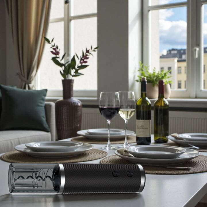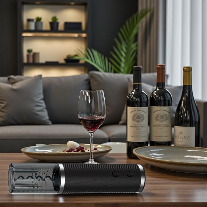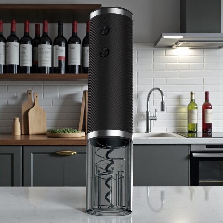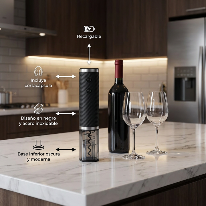 El destapador eléctrico recargable para botellas de vino klasse permite abrir botellas de vino de forma práctica y cómoda.