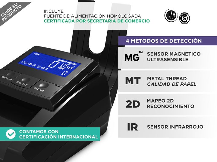La función Principal de este dispositivo es detectar si el billete introducido es falso. Hoy, en el contexto en el que vivimos, en el que hay mucha moneda circulante falsa, no esta de más contar con un compañero así de fiel. Gracias a su detección por infrarrojo, mg, transferencia del billete y mape...