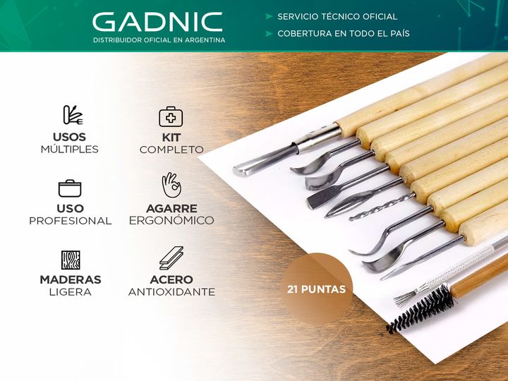 Gadnic presenta un nuevo set de alfareria de 11 piezas y 21 puntas multifuncionales Te presentamos nuestro set de alfarería de 11 piezas, perfecto para aquellos que buscan tener un kit completo y versátil para comenzar o mejorar su experiencia en este arte. Nuestro set incluye todas las herramientas...