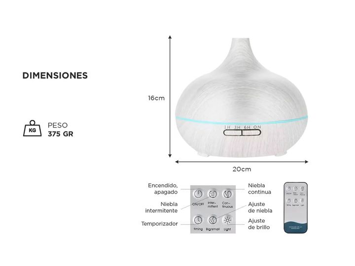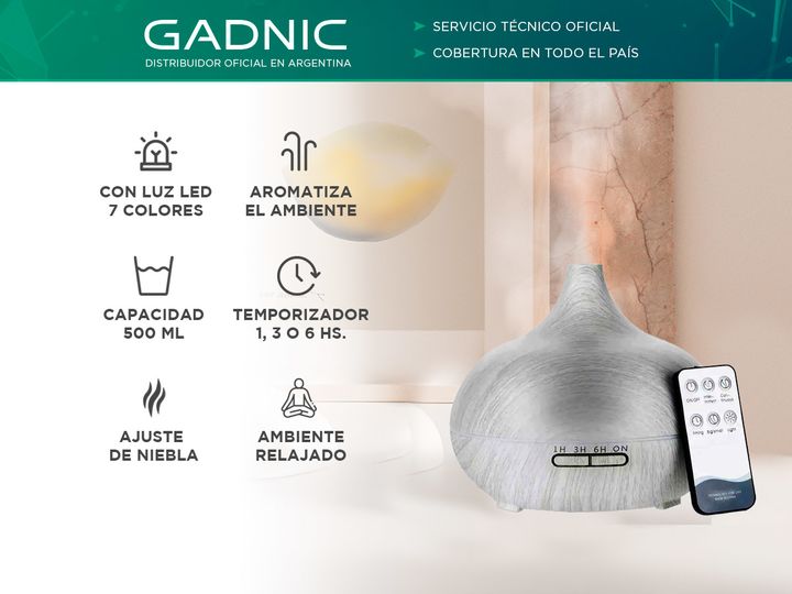 Gadnic presenta el nuevo Difusor Aromatizante con Luz LED 7 Colores Un difusor que además es innovador y mejora la estetica de cualquier ambiente, incluye control remoto desde el cual se puede regular la intensidad de la luz y la niebla, asi como cambiar los colores Posee un switch para configurar e...