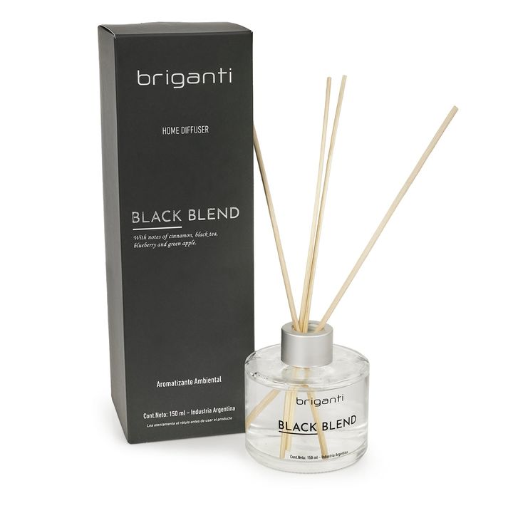 - Difusor de ambiente Black Blend. Incluye esencia x 150ml. y varillas. - Aroma natural de canela, té negro, arándanos y manzana verde. - El difusor de ambientes Black Blend es excelente para todo aquel que le guste tener sus espacios totalmente perfumados. Su fresco aroma nos permiten transformar ...