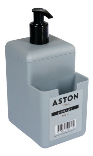 Dispenser para jabon con espacio para esponja Medidas : 8 x 10,5 x 18,2 cms Capacidad para jabon liquido : 500 ml Soporte para esponja y ORIFICIO para que escurra el agua por abajo y no quede dentro. Material : Plastico PP de la mas alta calidad Marca : ASTON Origen : Argentina