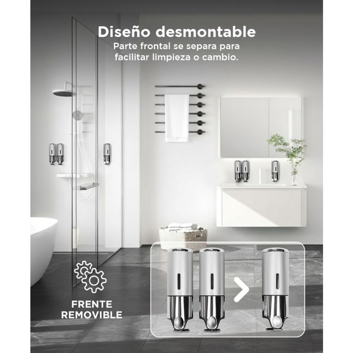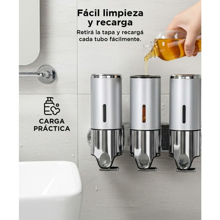 Nuevo Dispenser de Jabón Con Dosificador By Gadnic Este dispenser manual es ideal para quienes buscan ordenar y mejorar la estetica de su baño, en un solo contenedor podrás tener al alcance todo lo que necesitas, eliminando de tu baño envases y mejorando tu comodidad Es amurable y fácil de instalar ...