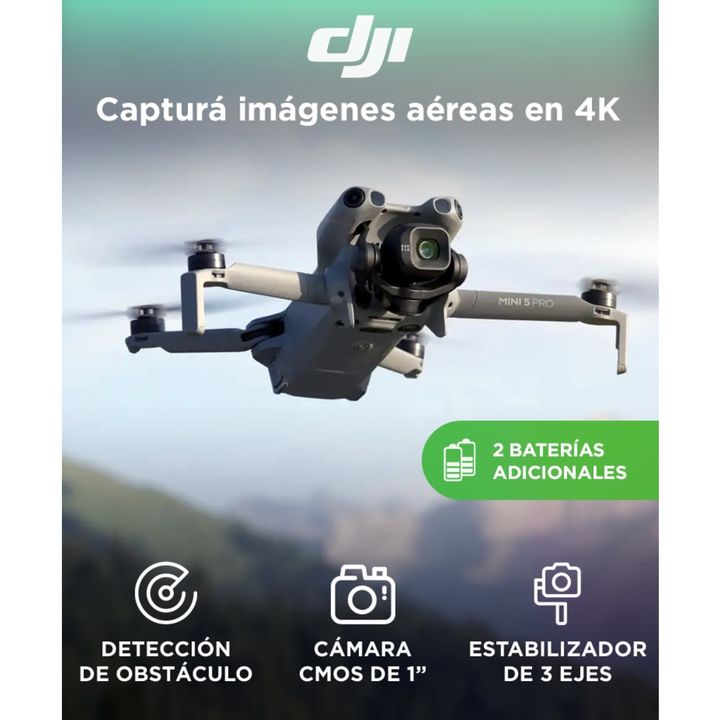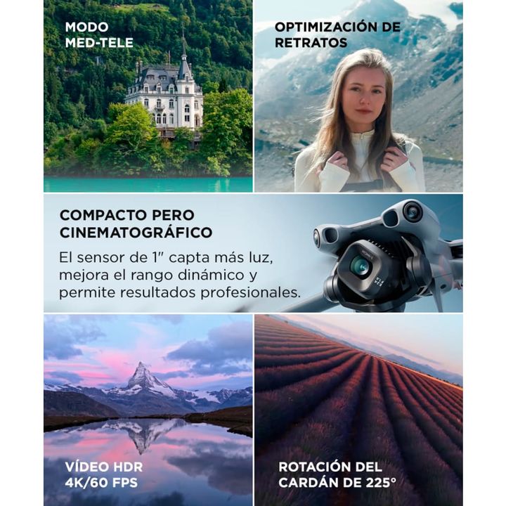 Tres baterías para más vuelos, más contenido: El combo incluye dos baterías inteligentes extra, lo que permite hasta 1 hora y 48 minutos de vuelo distribuidos. Ideal para cubrir múltiples escenarios, repetir tomas o grabar sesiones largas sin interrupciones. Sensor de 1 pulgada y Modo Med-Tele: Capt...