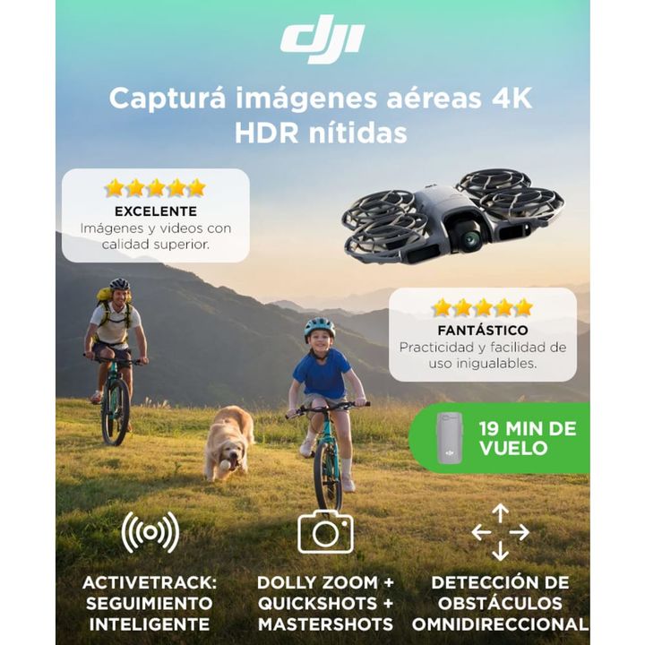 Imágenes aéreas en calidad profesional 4K HDR: El DJI Neo 2 combina potencia y portabilidad en un diseño ultracompacto. Su sensor CMOS 1/1.3” captura videos 4K HDR a 60 fps con un rango dinámico amplio y colores realistas, mientras la lente ultra gran angular de 155° permite tomas inmersivas y estab...