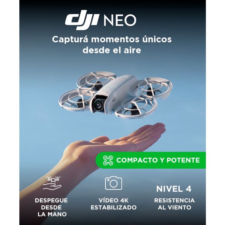 El DJI Neo es un drone ultraligero y compacto diseñado para capturar momentos inolvidables con una calidad cinematográfica. Con su avanzada cámara 4K, estabilización mecánica y electrónica, y un tiempo de vuelo de hasta 18 minutos, el DJI Neo es la herramienta perfecta para fotógrafos y filmmakers q...