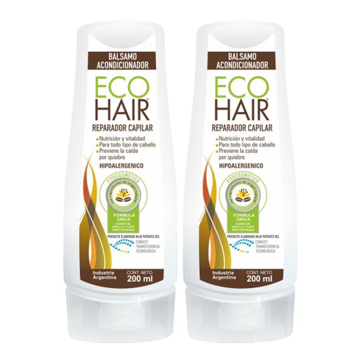 Componentes Balsamo Acondicionador Eco Hair Tratamiento Anticaida 200ml Código: 7798173570101 | SKU: 026006 x 2 uni Eco Hair Acondicionador 200ml. Tratamiento Anticaida ECOHAIR ACONDICIONADOR • Brillo y suavidad • Uso diario • Para todo tipo de cabello. FORMA DE USO: 1) Aplicar uniformemente sobre e...