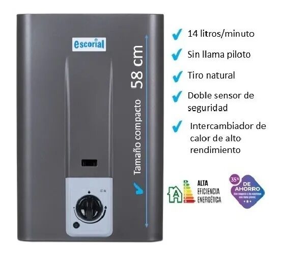 Clase A de eficiencia energética. Ahorra un 35% de gas en comparación a los calefones con llama piloto.
