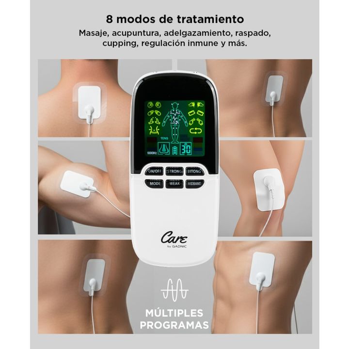 Este innovador dispositivo te ofrece una experiencia única en alivio muscular y relajación, directamente en la palma de tu mano. Con su avanzada tecnología de electroestimulación, este dispositivo emite impulsos eléctricos suaves a través de ocho electrodos estratégicamente colocados, brindando un a...