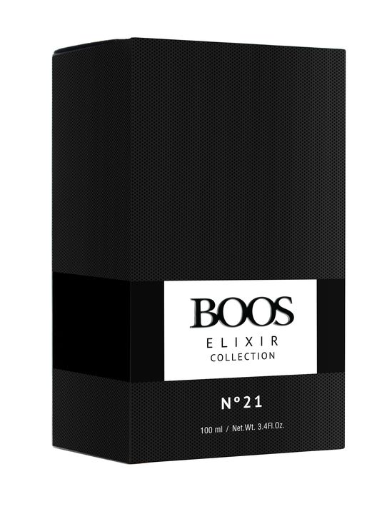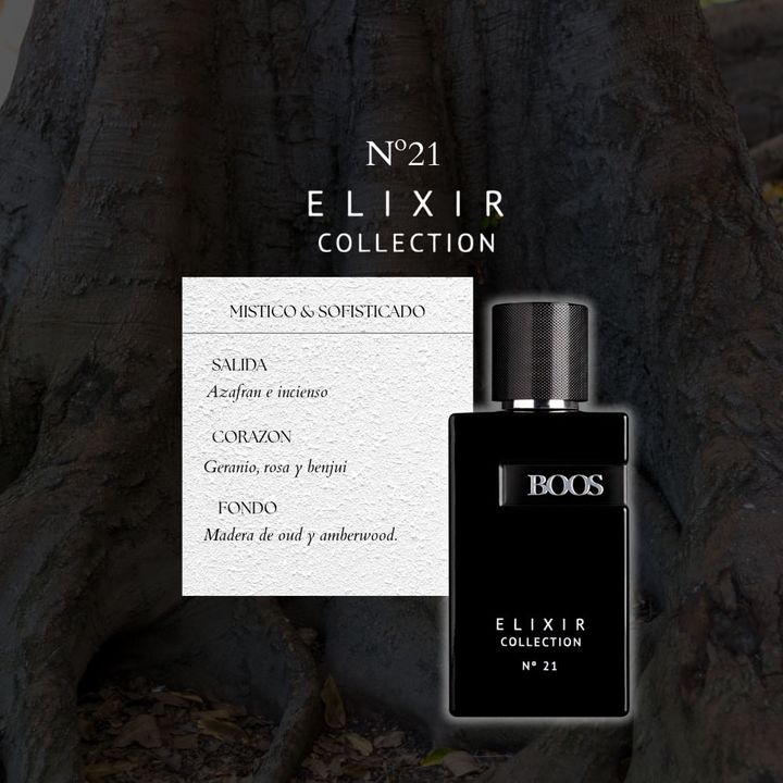 Boos Elixir N° 21 EDP Notas de Salida: Azafrán, Incienso Notas de Corazón: Geranio, Rosa, Benjui Notas de Fondo: Madera de oud, Amberwood