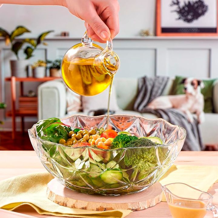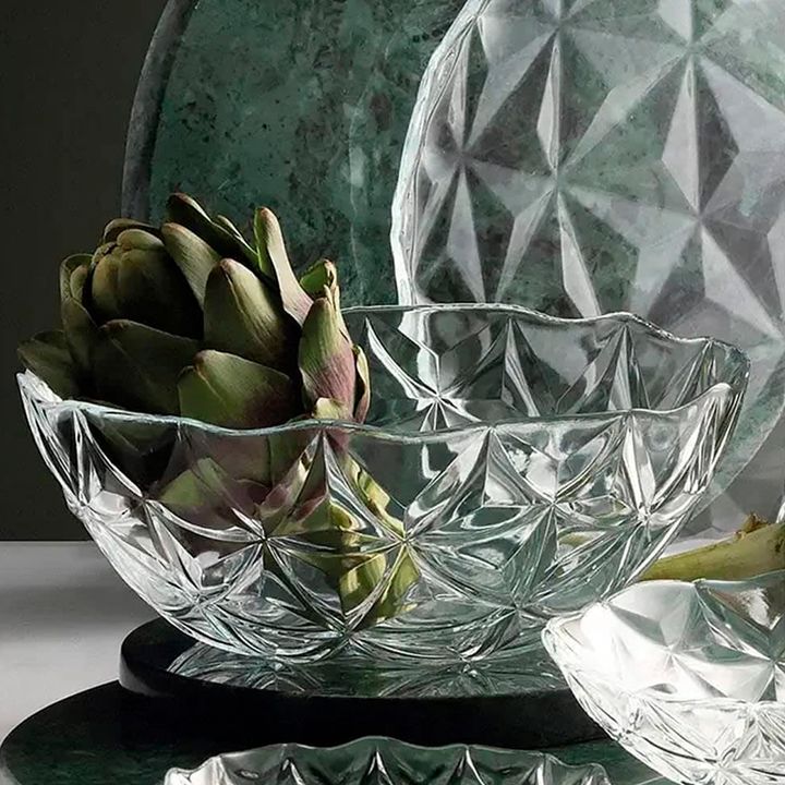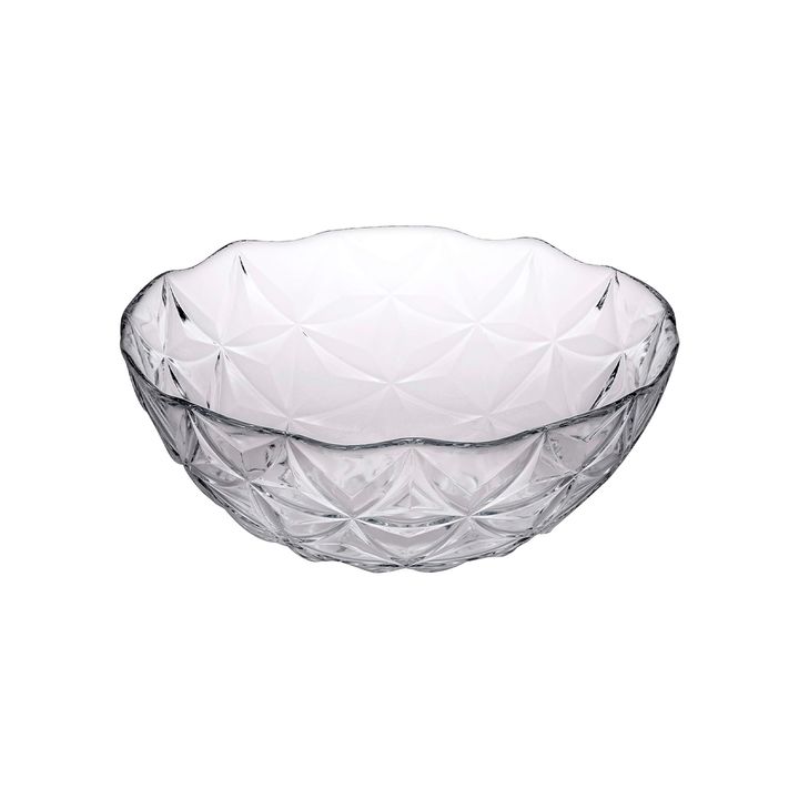 Ensaladera de vidrio de 24 cm de diámetro. Linea: Estrella Altura: 8 cm Capacidad: 1.85 L Con un diseño en relieve. Estos cuencos son versátiles y adecuados para servir ensaladas, aperitivos o postres, y añaden un toque elegante a su experiencia gastronómica. Material: Vidrio Templado Ideal para : e...
