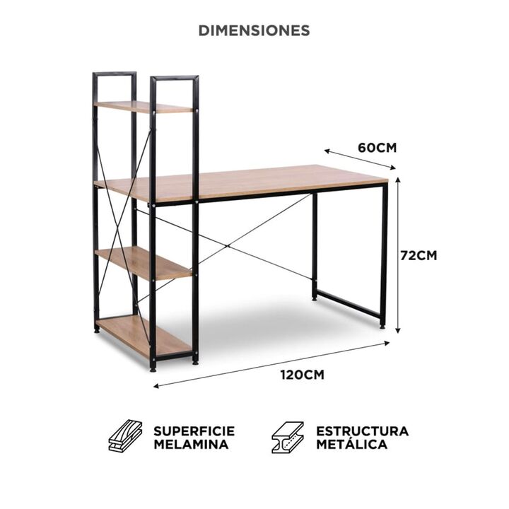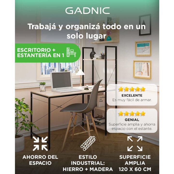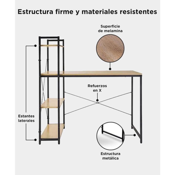Organización y espacio en un solo escritorio: Este escritorio con estantería lateral integra superficie de trabajo y guardado vertical en un solo mueble. Ideal para home office, estudio o espacios reducidos, permite mantener todo organizado sin ocupar más lugar. Materiales resistentes para uso diari...