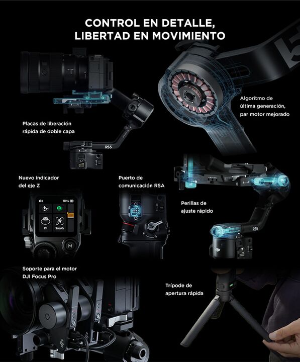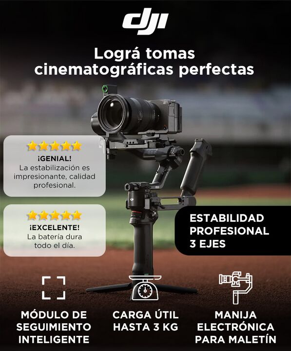 Estabilización cinematográfica de nueva generación: El Estabilizador DJI RS 5 Combo incorpora motores de alto torque y algoritmo avanzado para lograr movimientos suaves incluso en desplazamientos rápidos o tomas exigentes. Alta capacidad para equipos profesionales: Diseñado para cámaras mirrorless y...