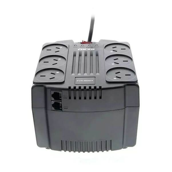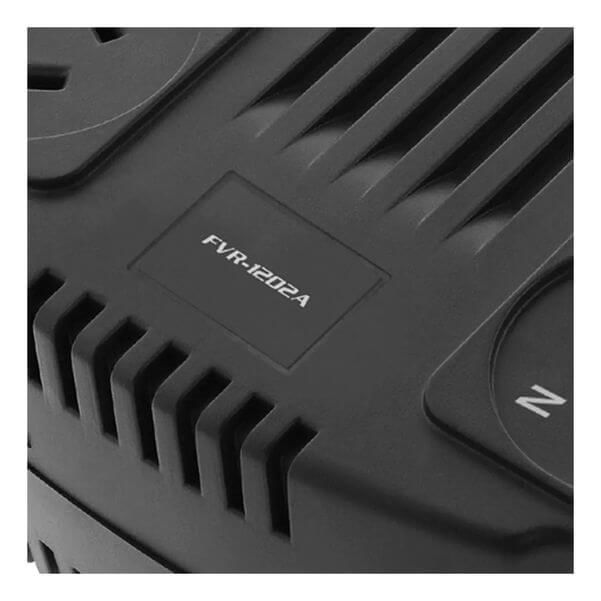 ESTABILIZADOR FORZA FRV-1202A 1200VA/600W Características generales · Marca: Forza · Línea: FVR 1200VA Series · Modelo: FVR-1202A · Color: Negro Especificaciones · Tipos de producto: Regulador de voltaje · Cantidad de tomas: 6 Otros · Dispositivos aptos: Computadoras, Periféricos, Televisores, Módem...