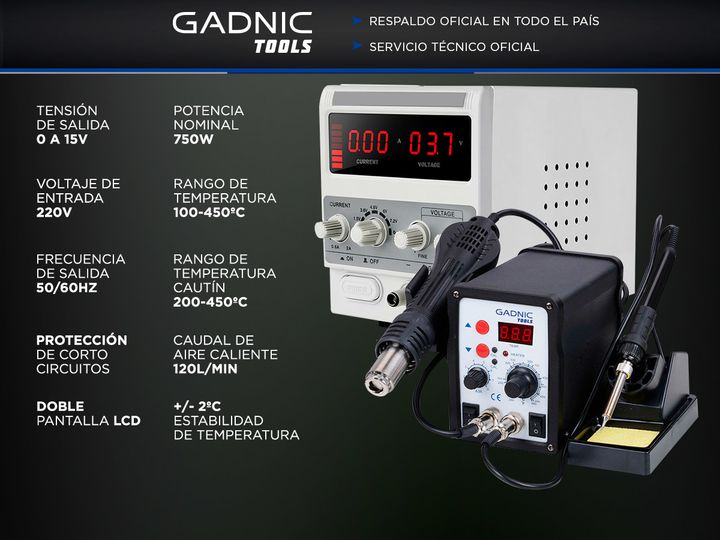 ¡GADNIC Tools presenta su nueva líneas de estaciones de soldado SMD! El Cautín y la bomba de aire le dan a la estación de soldado SMD un uso multifuncional para la reparación y producción de equipos electrónicos. Ideal para la mayoría de los trabajos de soldado y desoldado de componentes y circuitos...