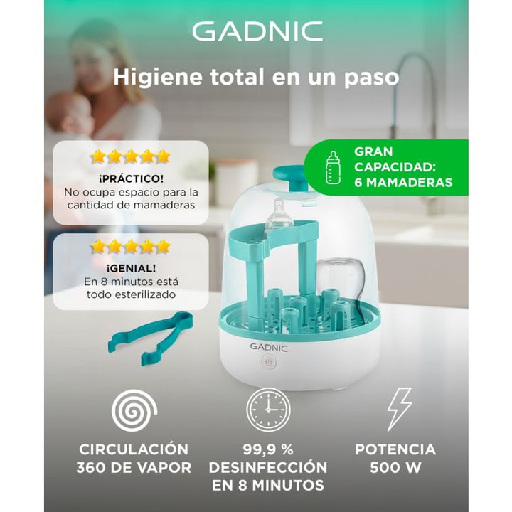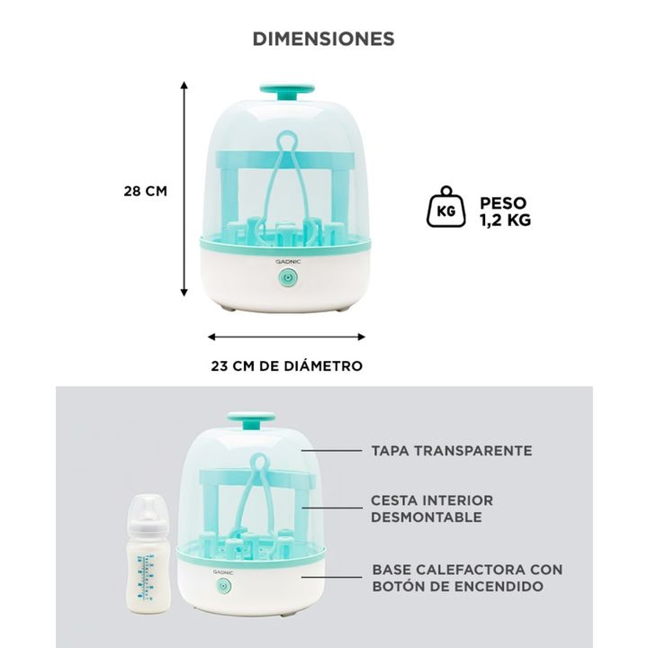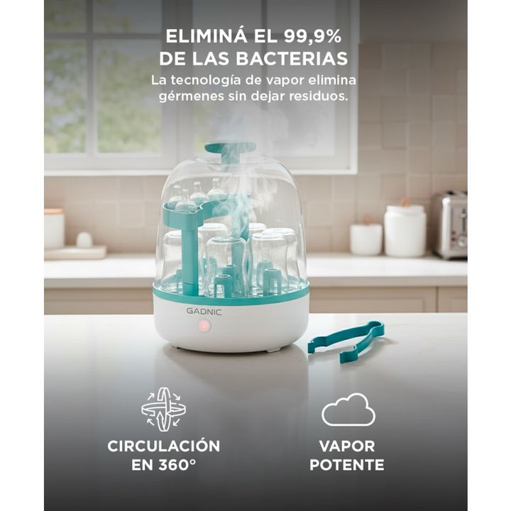 Descubre la solución perfecta para mantener los biberones de tu bebé limpios y listos en cuestión de minutos con nuestro Calentador-Esterilizador de Biberones. Este versátil dispositivo eléctrico ofrece una serie de beneficios indispensables: Esterilización eficiente: Elimina el 99.9% de los gérmene...