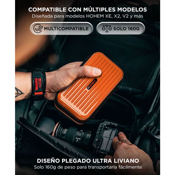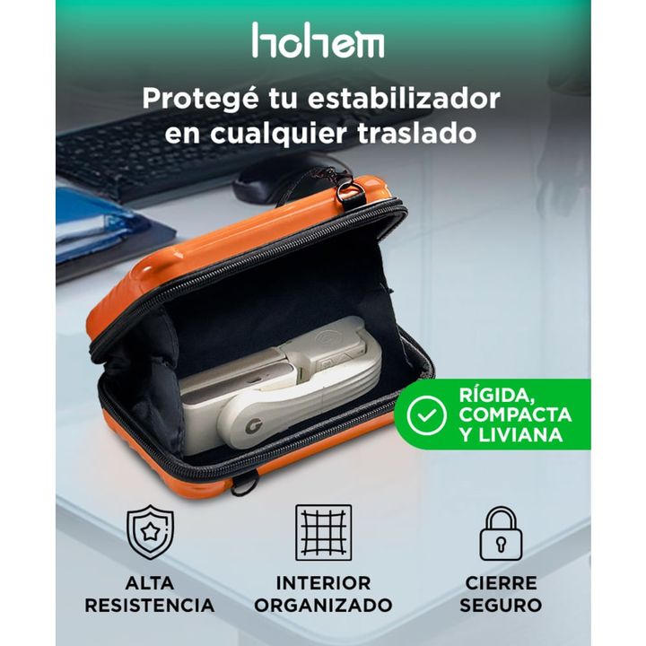 Protección rígida para tu equipo Fabricada con PC+ABS, el estuche resiste golpes y rayones para cuidar tu estabilizador en todo momento. Compatible con varios modelos HOHEM Adaptada a los estabilizadores XE, XE KIT, X, X2, V2 y Q, para que no tengas que preocuparte por medidas. Diseño liviano y comp...
