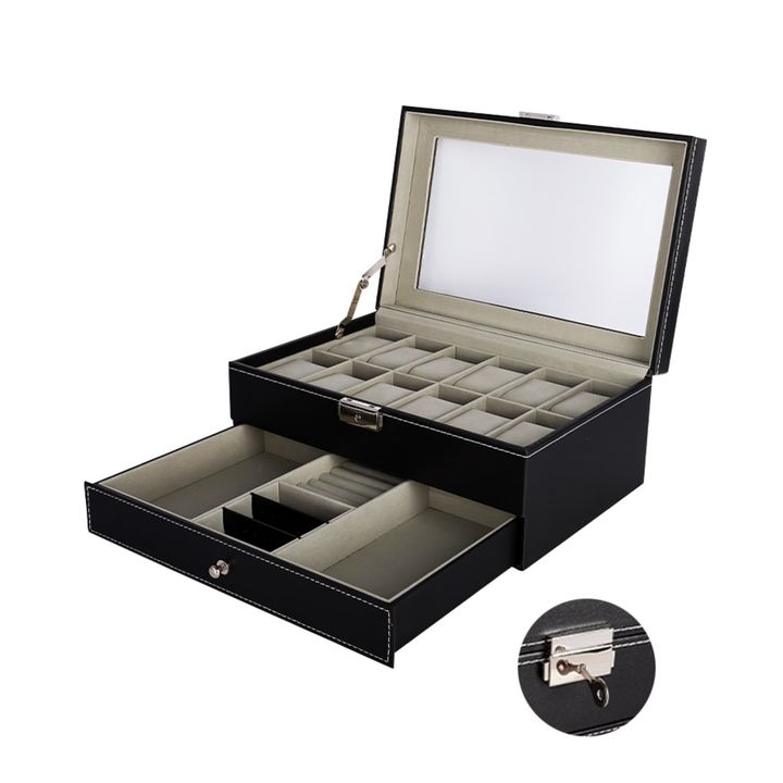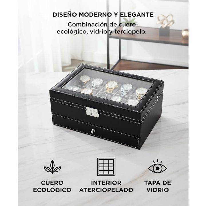 ¡Nuevo Alhajero Moderno Gadnic! Este elegante alhajero de doble piso está fabricado en cuero ecológico, ofreciendo una solución perfecta para almacenar relojes, joyas, gemelos, anillos, pendientes, pulseras y collares. Es ideal tanto para el hogar como para regalar. Con una tapa superior equipada co...