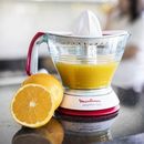 Exprimidor Eléctrico. Potencia de 29 W. Capacidad de 1 Lts. Motor de doble rotación que se acciona automáticamente al presionar la fruta con el cono. Exprimidor con dos opciones de jugo: tradicional con pulpa o libre de pulpa gracias a su filtro metálico Recipiente totalmente transparente para una m...