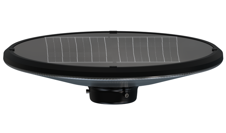 Compra online el Farol Solar UFO 150W definitivo. Olvídate de cables con este sistema All-in-One: Panel solar integrado, batería de litio y control remoto. Disponible en kit con poste o solo luminaria.