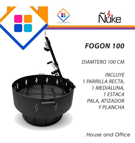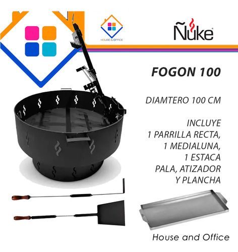 FOGONERO ÑUKE FOGÓN 100 PARRILLAS ESTACA PALA ATIZADOR Y PL Marca:Ñuke Código: 04-000-028 MEDIDAS Alto: 45,2 cm. Ancho : 118 cm. Diámetro: 100 cm. Peso: 35 kg. INCLUYE 1 parrilla recta, 1 medialuna, 1 estaca. Pala, atizador y plancha -Marca: Ñuke -Modelo: Fogon 100 -Diámetro: 100 Cm -Altura: 45.2 Cm...