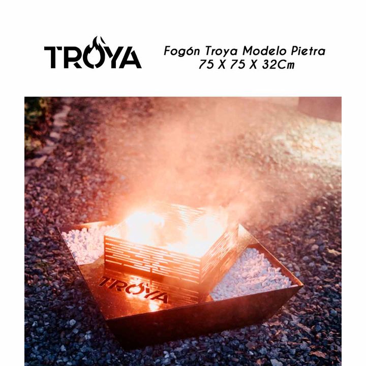 FOGÓN TROYA MODELO PIETRA 75 X 75 X 32 CM Marca:Troya Código: 4757 La poesía de prender un fueguito, una noche cualquiera. Creada con amor en Rafaela. Características: -Hecha de chapa 3,2 mm. -Medidas: 75 cm x 75 cm x 32 cm de alto. -Marca: Troya -Modelo: Pietra -Ancho: 75 Cm -Altura: 32 cm -Profund...