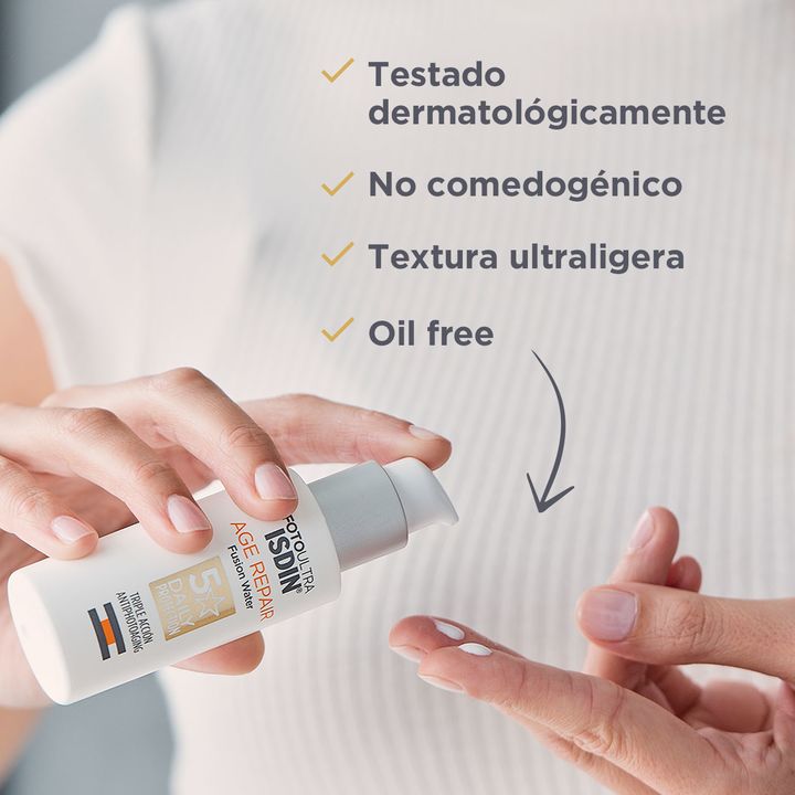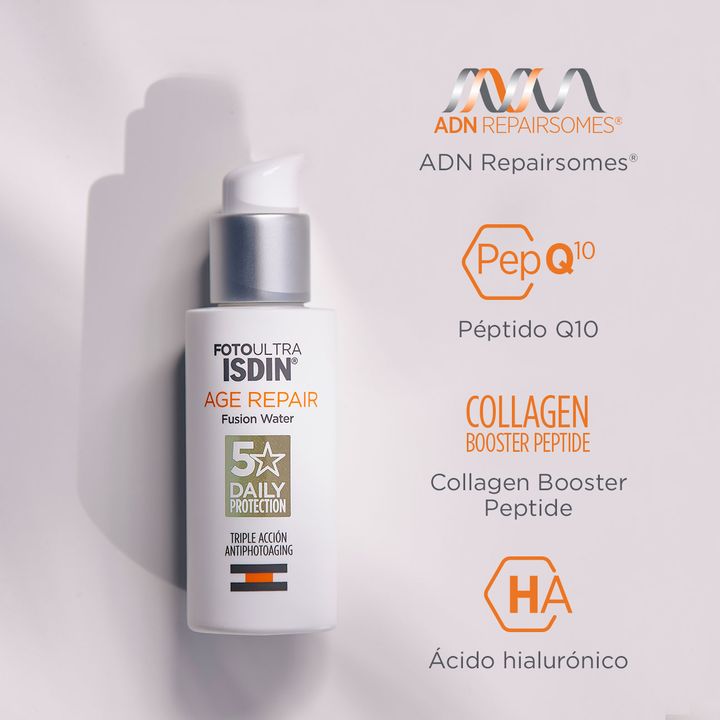 Fotoprotector Isdin Age Repair Textura Fusion Water 50 ml AGE REPAIR EL PRIMER FOTOPROTECTOR FACIAL CON TRIPLE ACCIÓN ANTI FOTOENVEJECIMIENTO Textura Fusion Water El fotoenvejecimiento es mucho más que el envejecimiento natural de la piel. ¿Sabías que un 80% del envejecimiento de tu piel se debe al ...