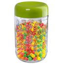 Frasco de vidrio con tapa de plástico hermético con cierre rosca 1000 cc Vidrio decorado Medidas : Altura total: 19 cm Diámetro de la base: 8 cm Diámetro de la boca: 7.5 cm Capacidad: 1000 cc Ideal para el guardado de : azúcar, nueces, almendras, arroz, ... etc etc Origen : China Marca: Aston