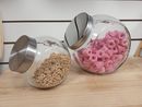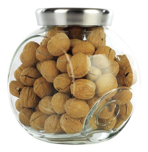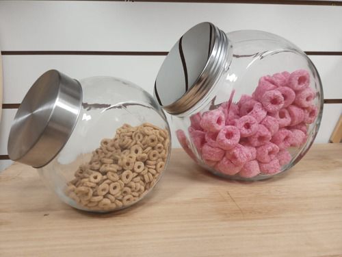 Frasco redondo de vidrio con tapa de acero. Con 2 posiciones de apoyo. Medida : Alto : 22,70 cms / 21 cms Ancho : 14,8 cms Ancho de la boca: 12,5 cms Profundidad : 21 cms Diametro interno de la boca : 11 cms Capacidad: 4,3 Lt. En caja de regalo.