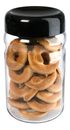 Frasco de vidrio con tapa de plástico hermético con cierre rosca 1400 cc Medidas : Altura total: 19.5 cm Diámetro de la base: 11 cm Diámetro de la boca: 9.5 cm Capacidad: 1400 cc Ideal para el guardado de : azúcar, nueces, almendras, arroz, ... etc etc Origen : China Marca: Aston