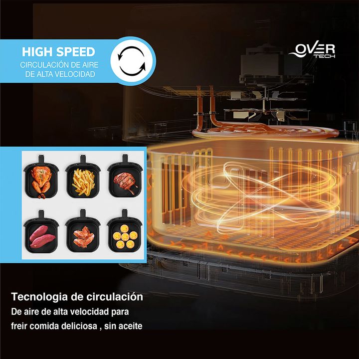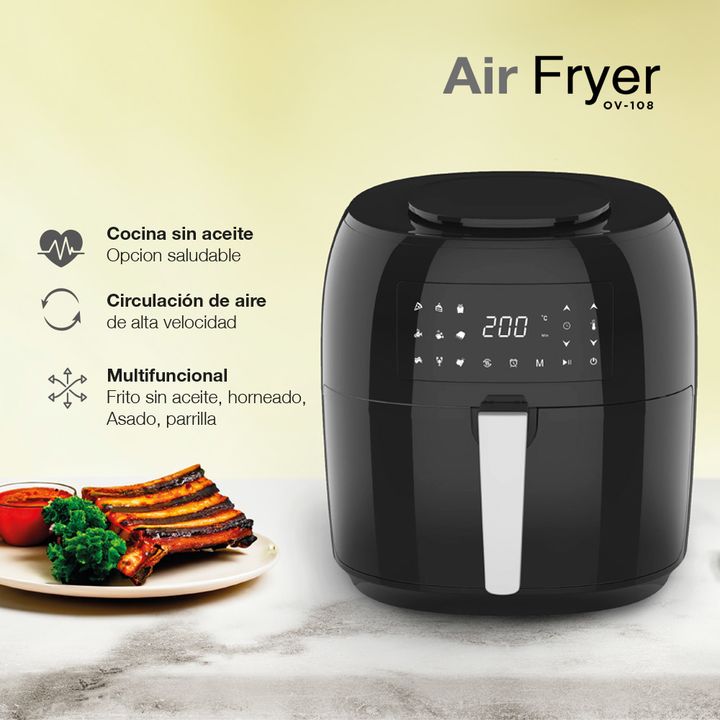 Puse esta descripcion para replicarla: OverTech OV-108: Freidora de aire con capacidad para toda la familia ¿Buscas una freidora de aire potente y versátil para preparar tus comidas favoritas de forma más saludable? La OverTech OV-108 es la opción perfecta. Con su capacidad de 7.4 litros, 1800 watts...