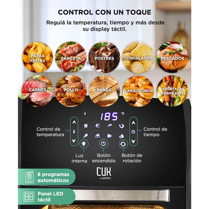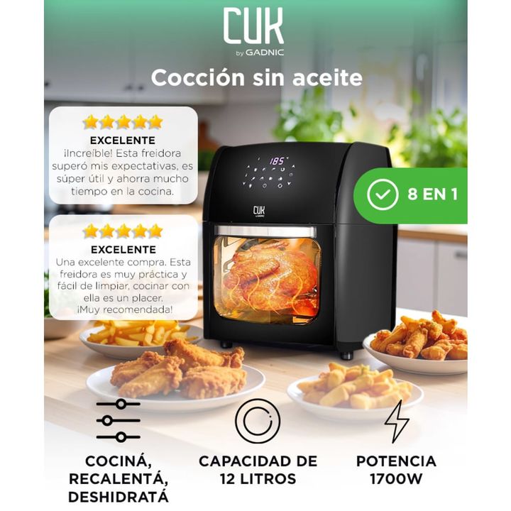 ¡Presentamos el innovador Horno de Convección sin Aceite Gadnic F12.0! Este versátil electrodoméstico permite freír, asar y hornear tus comidas favoritas sin necesidad de aceite, logrando resultados crujientes y sabrosos gracias a su avanzada tecnología de circulación de aire. Disfrutá de pollo frit...