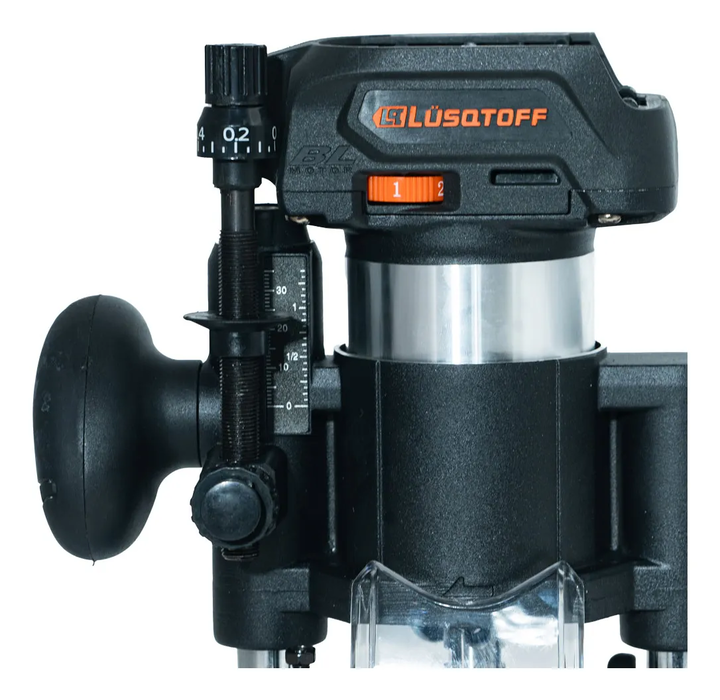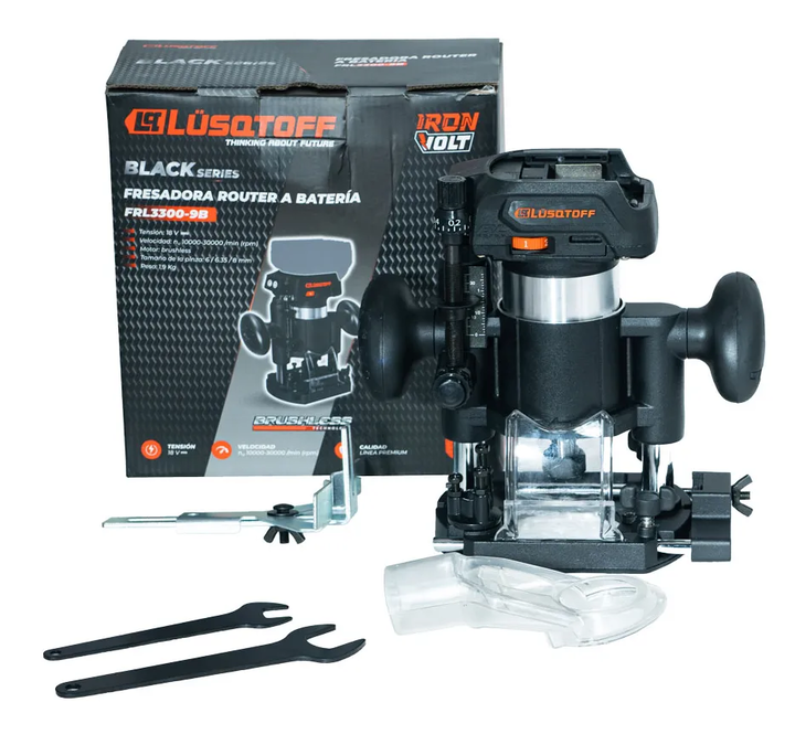 FRESADORA ROUTER INALÁMBRICA BRUSHLESS 8MM LUSQTOFF BLACK ESPECIFICACIONES - NO INCLUYE BATERÍAS NI CARGADOR - Cuenta con arranque suave - Posee velocidad variable - Luz LED integrada - Conector para extracción de polvo - Diseño ergonómico CARACTERISTICAS - Marca: Lusqtoff - Modelo: FRL3300-9B - Ser...