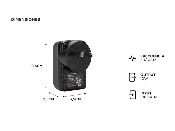 Compatibilidad Universal: Con un rango de entrada de 100-240V AC, este cargador es compatible con la mayoría de las tomas de corriente estándar en todo el mundo, lo que lo hace ideal para viajes internacionales o uso doméstico. Potente y Eficiente: Con una salida de 10W de corriente continua, este c...