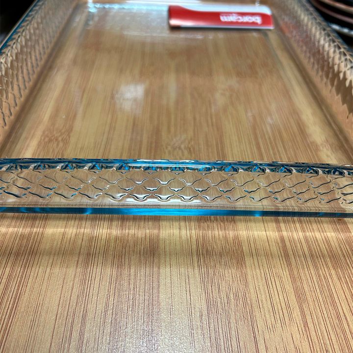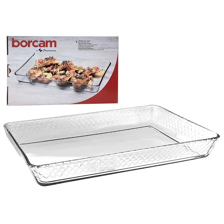 Fuente rectangular con base lisa en vidrio para horno Resistente al calor vidrio BOROSILICATO. Medidas : 37 x 24 cms x 4.5 cms de alto Capacidad: 2850 cc Ideal para cocinar todo tipo de comidas al horno : pollos, carnes, verduras. Apto para hornos convencionales , micro ondas , freezer y lavavajilla...